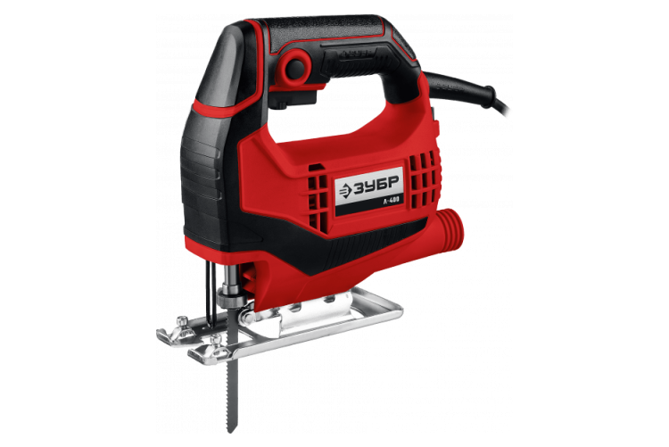 Зубр Л-400 — бюджетный электролобзик с пылеудалением. Мощность 400 Вт, ход пилки — 18 мм, максимальная толщина пропила по дереву — 55 мм. Имеет обрезиненную рукоятку, которая гасит вибрации, и небольшой вес. В комплекте есть полотно, но оно не рассчитано на эффективную работу, поэтому сразу стоит приобрести дополнительные пилки.