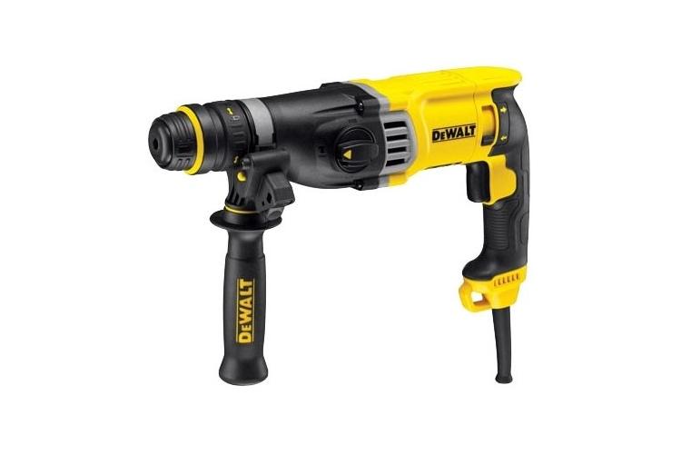 DeWALT D25144K — компактный перфоратор (вес 3,2 кг) с 900-ваттным мотором. Ударный механизм с энергией 3,2 Дж справляется с бетоном, а благодаря сменному патрону инструмент можно использовать как дрель-шуруповёрт. В комплекте есть трёхкулачковый патрон. Среди недостатков — высокий уровень вибраций и шума (89 дБ).