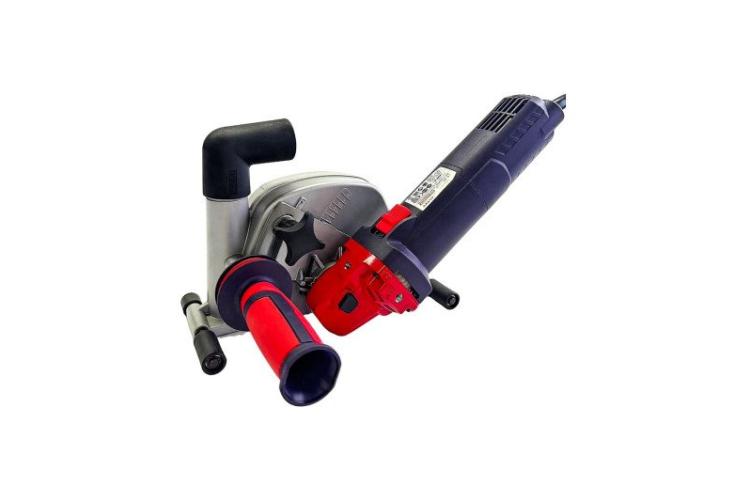 Штроборез рассчитан на работу с дисками 125 мм, его мощность — 1,4 кВт. Максимальная глубина и ширина штробы — 30 мм. Настройка глубины удобная, но у инструмента есть минусы: сильно греются мотор и редуктор, а выключатель расположен неудобно — когда рука на ручке, до него не дотянуться. Комплекта дисков в поставке нет.