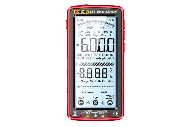 Мультиметр напоминает защищённый смартфон: пятидюймовый монохромный дисплей занимает практически всю лицевую площадь, кнопки управления находятся справа, а гнёзда для щупов — внизу. Имеет аккумулятор на 1200 мА·ч с зарядкой через Type-C. Способен измерять напряжение, ток, ёмкость, частоту (до 1 МГц), температуру, сопротивление, есть функции прозванивания цепей, датчик поиска проводки и режим поиска фазного провода. Из особенностей: подсветка работает только вместе с фонариком, а из-за расположения гнёзд с щупами прибор неудобно ставить под углом или вертикально.