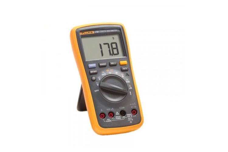 Мультиметр Fluke 17B — надёжный профессиональный прибор для измерений. Измеряет напряжение (до 1000 В), ток, сопротивление, ёмкость, частоту и температуру. С его помощью можно проверять диоды и искать короткие замыкания. Есть автоматический выбор диапазонов с возможностью ручного масштабирования, режим относительных измерений и фиксация показаний. В комплекте есть термопара.