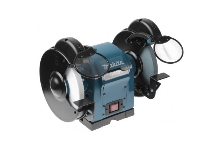 Точильный станок «Макита» оснащён мотором мощностью 550 Вт и рассчитан на 205-миллиметровые круги. Весит 25 кг, имеет выдвижной лоточек для охлаждения и защитное стекло с увеличением для точных работ. Конструкция подручников — простые выгнутые полоски стали, что указывает на ограниченную пригодность к тяжёлым нагрузкам.