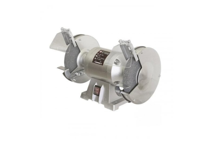 Точильный станок «Калибр» — компактный и лёгкий (10,3 кг), удобно закрепить на верстаке. Мощность — 400 Вт, работают круги диаметром 175 мм. Посадка кругов — 32 мм на переходнике, диаметр вала — 12,7 мм. Подручники сделаны из низкоуглеродистой стали, могут согнуться при заклинивании инструмента.