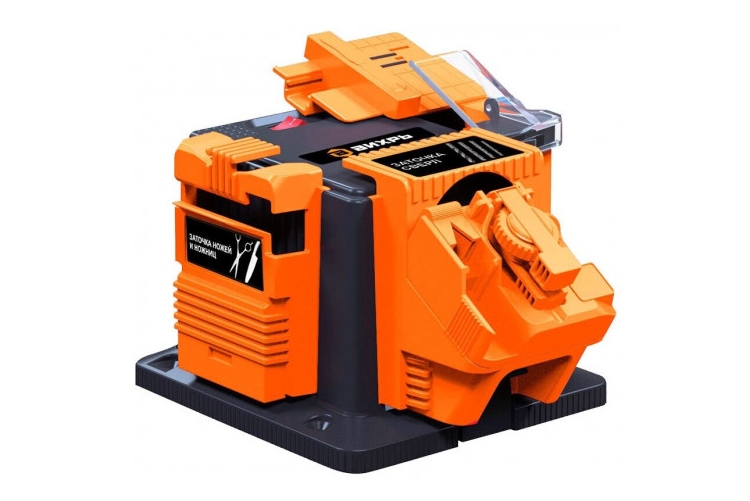 «Вихревский» СЗМ-65 — станок для заточки с мотором мощностью 65 Вт. Раскручивает 49,3-мм круг до 6500 об/мин. Подходит для заточки свёрл диаметром от 3 до 10 мм и лезвий/стамесок шириной от 6 до 51 мм. Приспособления для заточки сделаны из прочного пластика, штатный круг — крупнозернистый (180).