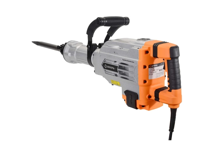 Отбойный молоток ЗУБР ЗММ-25-1500 ЭВК — надёжный инструмент с вертикальным двигателем и редуктором с ударным механизмом. Энергия удара — 25 Дж, мощность ниже, чем у некоторых аналогов, на 100 Вт, вес — около 11 кг. Есть электроника с плавным пуском и регулировкой оборотов, рукоятки обрезинены. В комплекте нет зубильца, нельзя изменять угол установки инструмента — придётся поворачивать весь молоток вместе с долотом.
